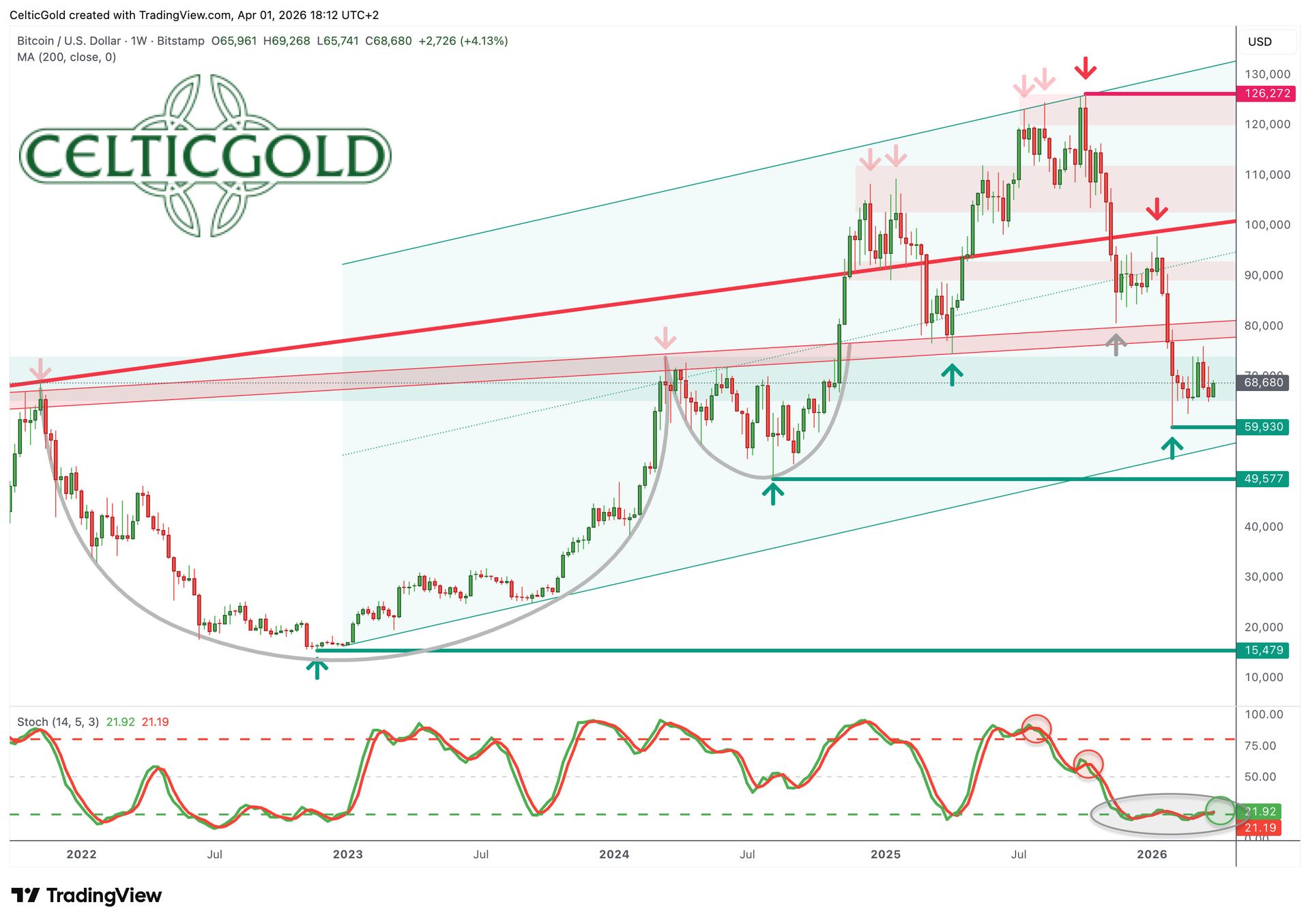 Bitcoin in USD, Wochenchart vom 1. April 2026. Quelle: Tradingview