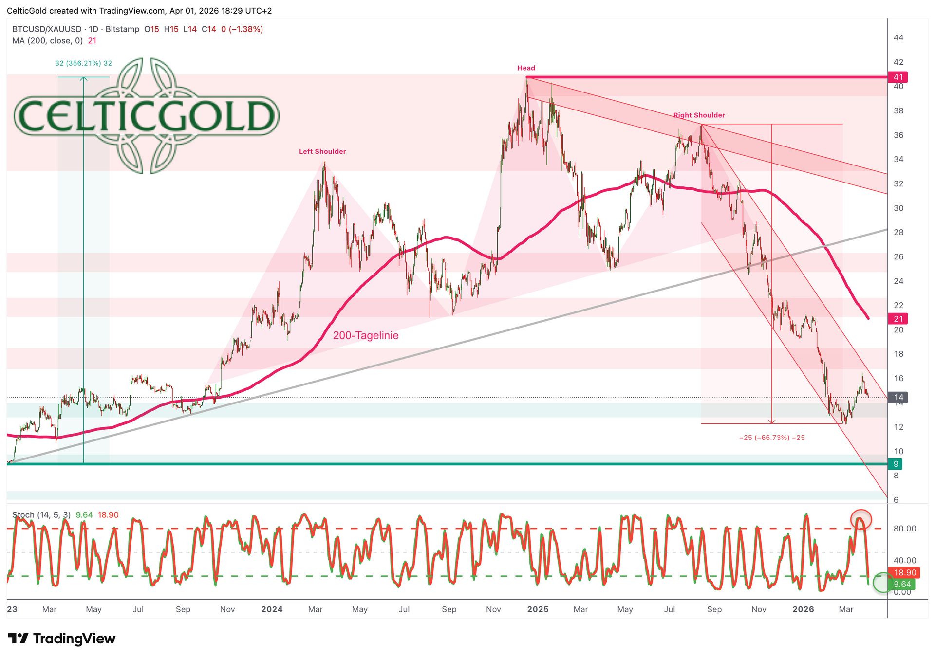 Bitcoin/Gold-Ratio, Wochenchart vom 1. April 2026. Quelle: Tradingview
