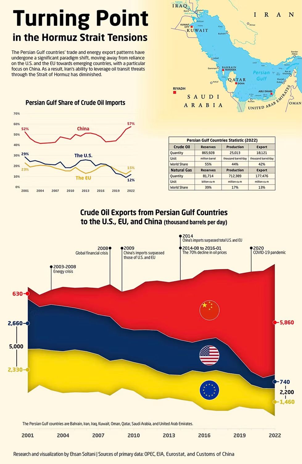 Insgesamt verfügt die Golfregion über rund 55 % der weltweiten Ölreserven und bleibt ein zentraler Akteur im Energiemarkt, doch die Handelsströme haben sich zunehmend nach Asien verlagert. Diese Entwicklung schwächt Irans geopolitischen Hebel gegenüber dem Westen, erhöht jedoch gleichzeitig die wirtschaftliche Verwundbarkeit Chinas gegenüber möglichen Störungen in der Straße von Hormus.