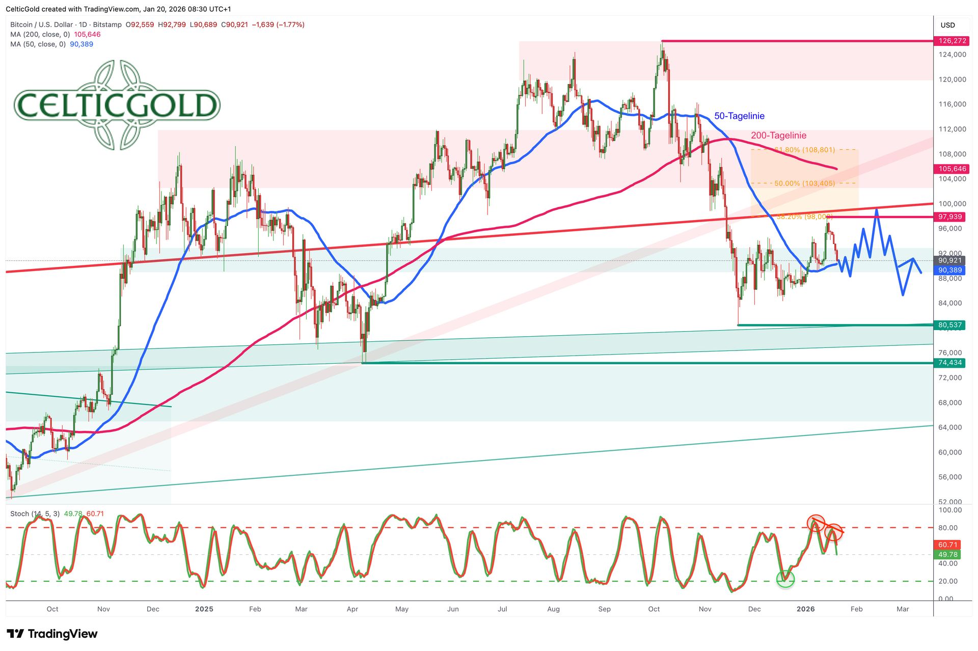 Bitcoin in USD, Tageschart vom 20. Januar 2026. Quelle: Tradingview