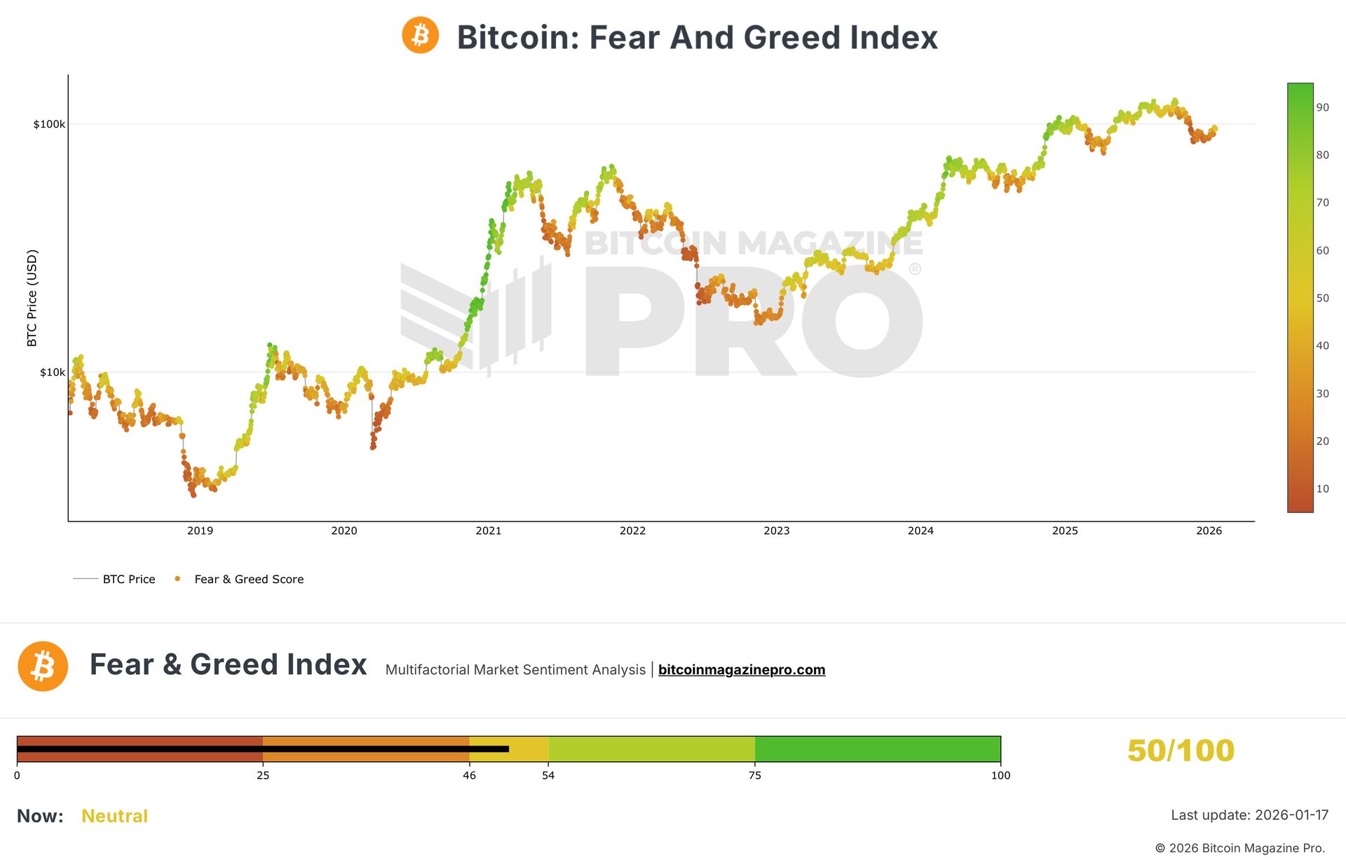 Crypto Fear & Greed Index vom 17. Januar 2026. Quelle: Bitcoin Magazine Pro.