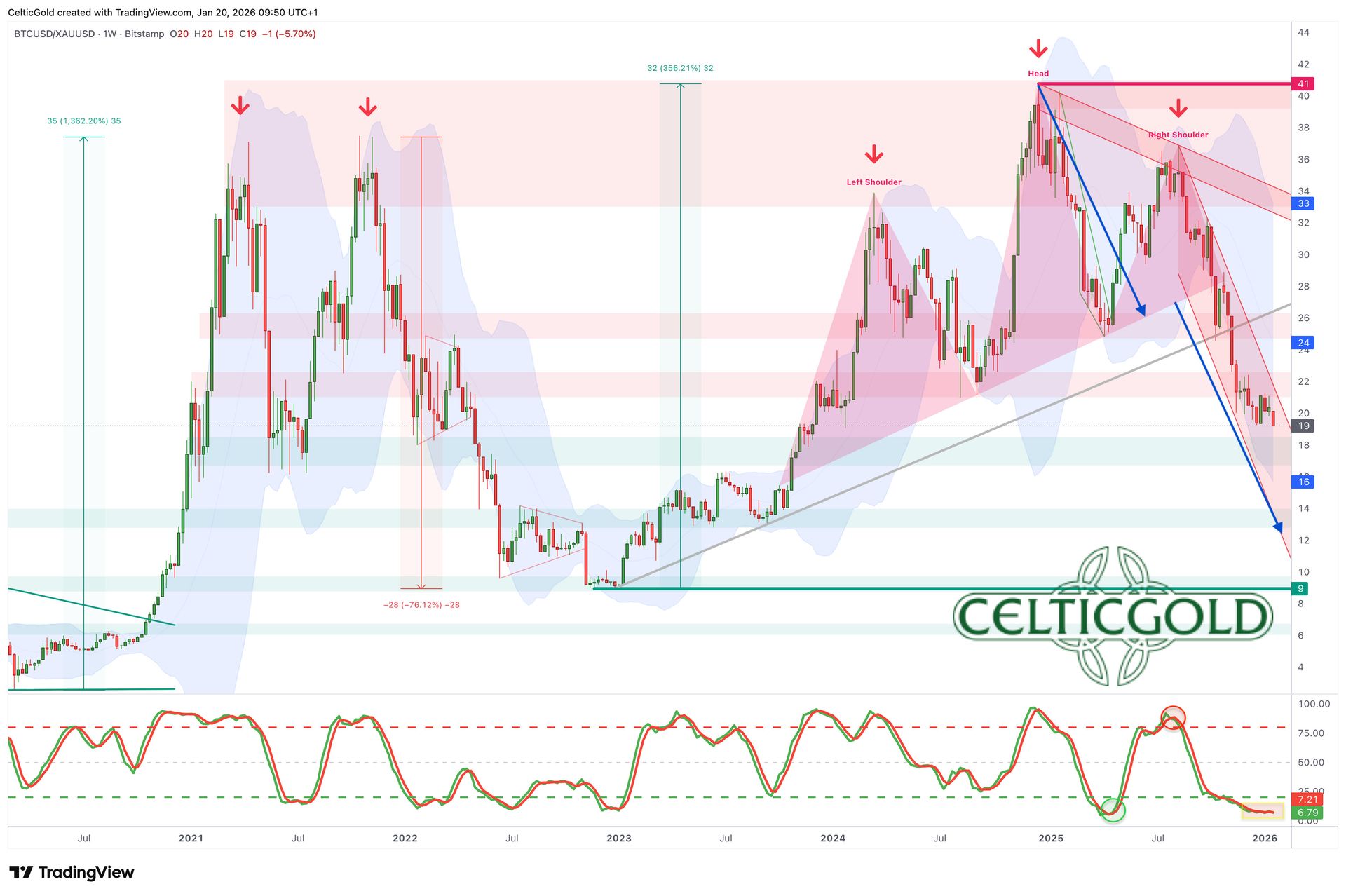 Bitcoin/Gold-Ratio, Wochenchart vom 20. Januar 2026. Quelle: Tradingview
