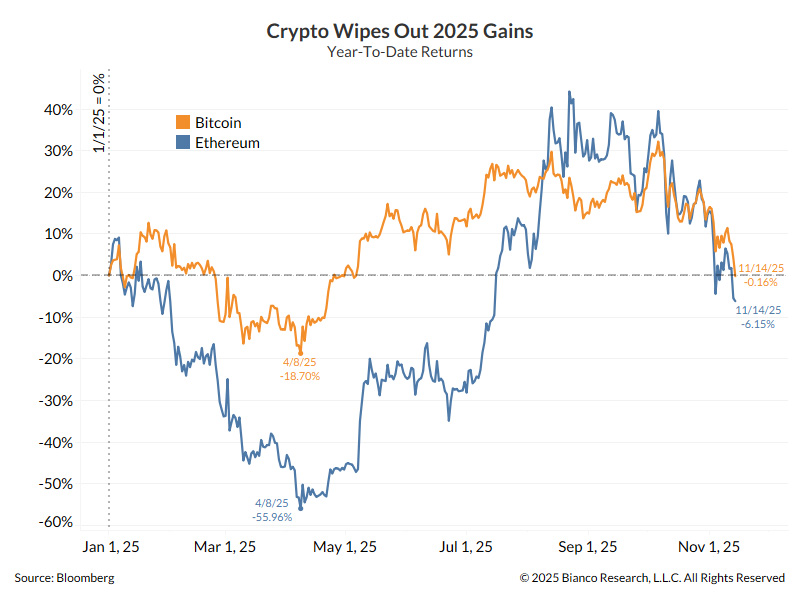 Krypto vernichtet die Kursgewinne des Jahres 2025, vom 15. November 2025. Quelle: Bianco Research
