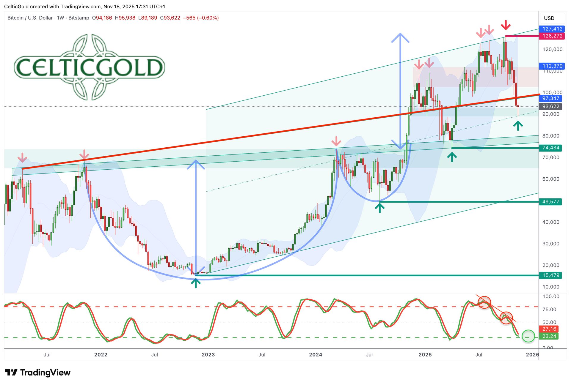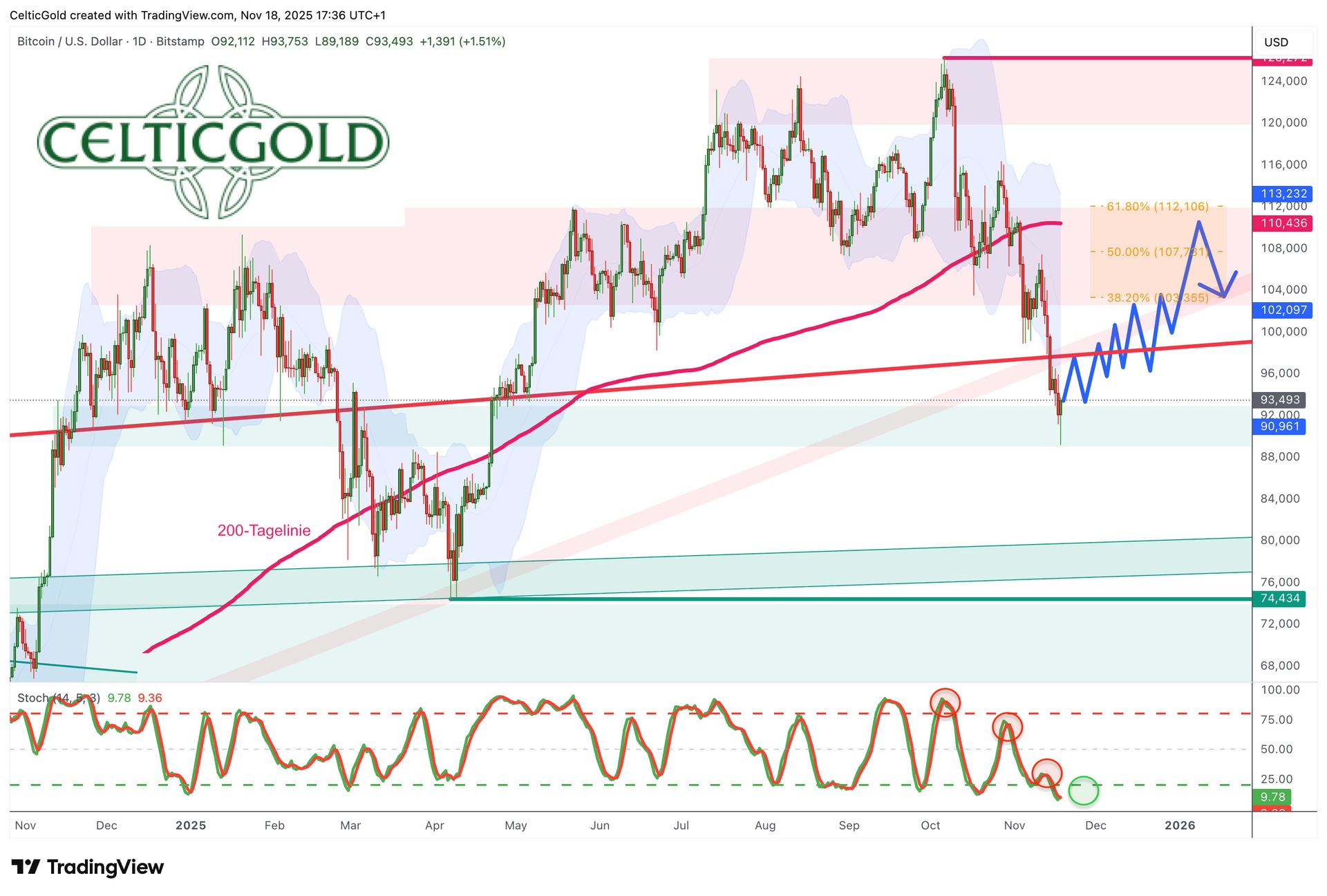 Bitcoin in USD, Wochenchart vom 18. November 2025. Quelle: Tradingview
